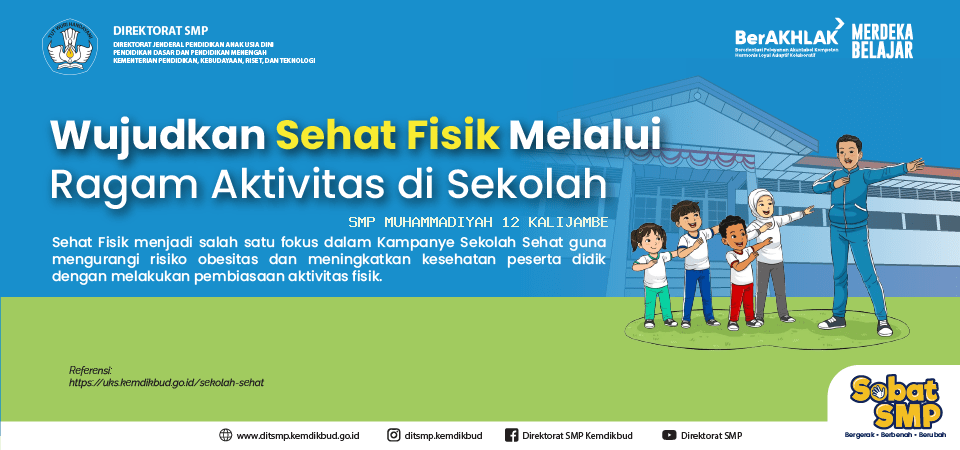 Halo, Sobat SMP! Selain mengonsumsi makanan yang bergizi, menjaga kesehatan dan kebugaran fisik juga merupakan hal yang penting dilakukan. Dalam Kampanye Sekolah Sehat yang diluncurkan oleh Kementerian Pendidikan, Kebudayaan, Riset, dan Teknologi terdapat tiga fokus utama, dimana salah satunya adalah Sehat Fisik.